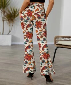 Wholesale π IZURIA Beige & Orange Paisley High-Waist Flare Pants – π© Women π