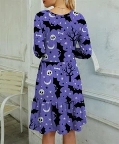 Wholesale π― IZURIA Purple & Black Skull Bat Long-Sleeve Ruffle-Hem Midi π Dress – Plus π€©