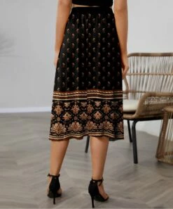 Best Sale βοΈ IZURIA Black & White Geo Elastic-Waist Midi π Skirt – π© Women & Plus π