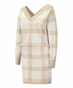 Flash Sale π€© IZURIA Khaki & Cream Windowpane V-Neck Sweater & π Skirt – π© Women π―