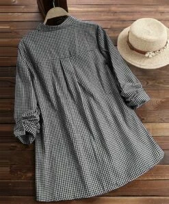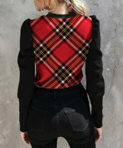 Cheapest π IZURIA Black & Red Tartan Contrast Button-Accent Puff-Sleeve Crewneck Top – Plus π