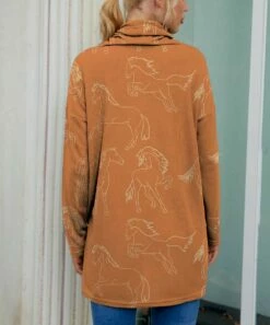Brand new π IZURIA Orange & Yellow Horse Waffle-Knit Drawstring Cowl Neck Top – π© Women π