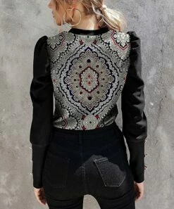 Brand new π IZURIA Black & White Medallion Button-Accent Long Puff-Sleeve Top – π© Women π―