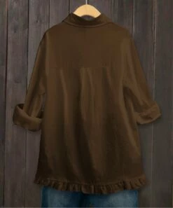 Promo π₯ IZURIA Khaki & Coffee Snake Ruffle-Shoulder Long-Sleeve Crewneck Top – π© Women π